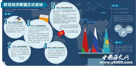 2014年5月29日,欧亚经济委员会最高理事会会议在哈萨克斯坦首都阿斯塔纳举行,俄罗斯总统普京、白俄罗斯总统卢卡申科、哈萨克斯坦总统纳扎尔巴耶夫签署了《欧亚经济联盟条约》。根据条约,欧亚经济联盟于2015年1月1日正式启动,到2025年将实现商品、服务、资金和劳动力的自由流动,终极目标是建立类似于欧盟的经济联盟,形成一个拥有1.7亿人口的统一市场。